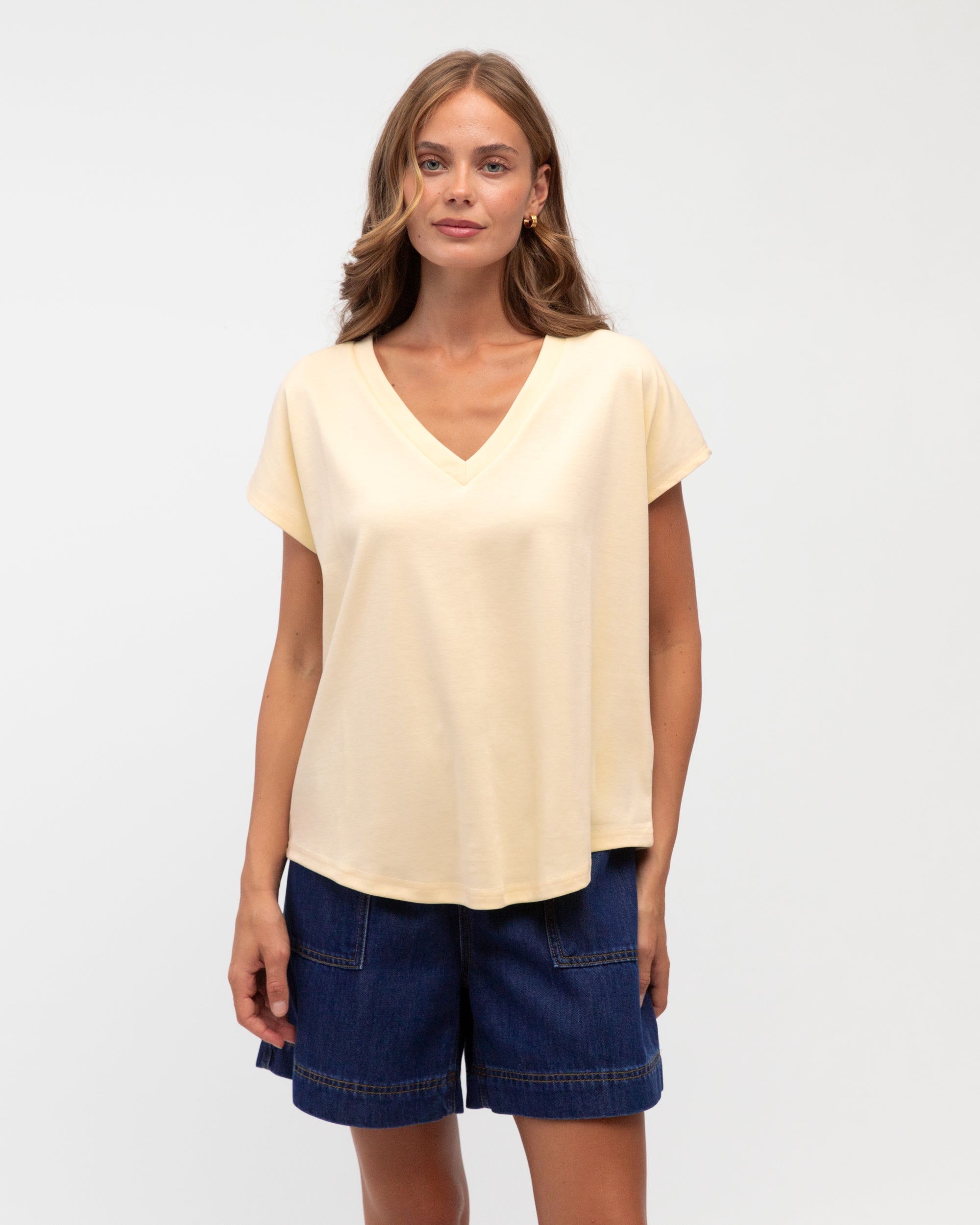 V-Neck Tee in Navy and Butter by Label of Love